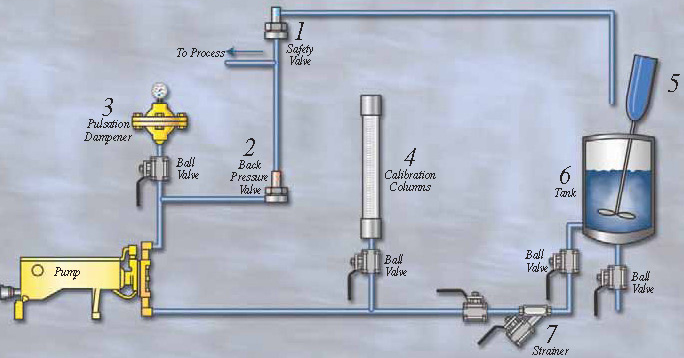 در شکل زیر شماتیک نصب یک سیستم دوزینگ پمپ نشان داده شده است.