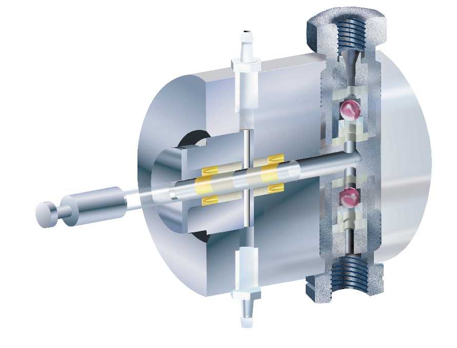 در این نوع از پمپ ها از یک pulse damper برای کاهش نوسانات جریان استفاده شده است.